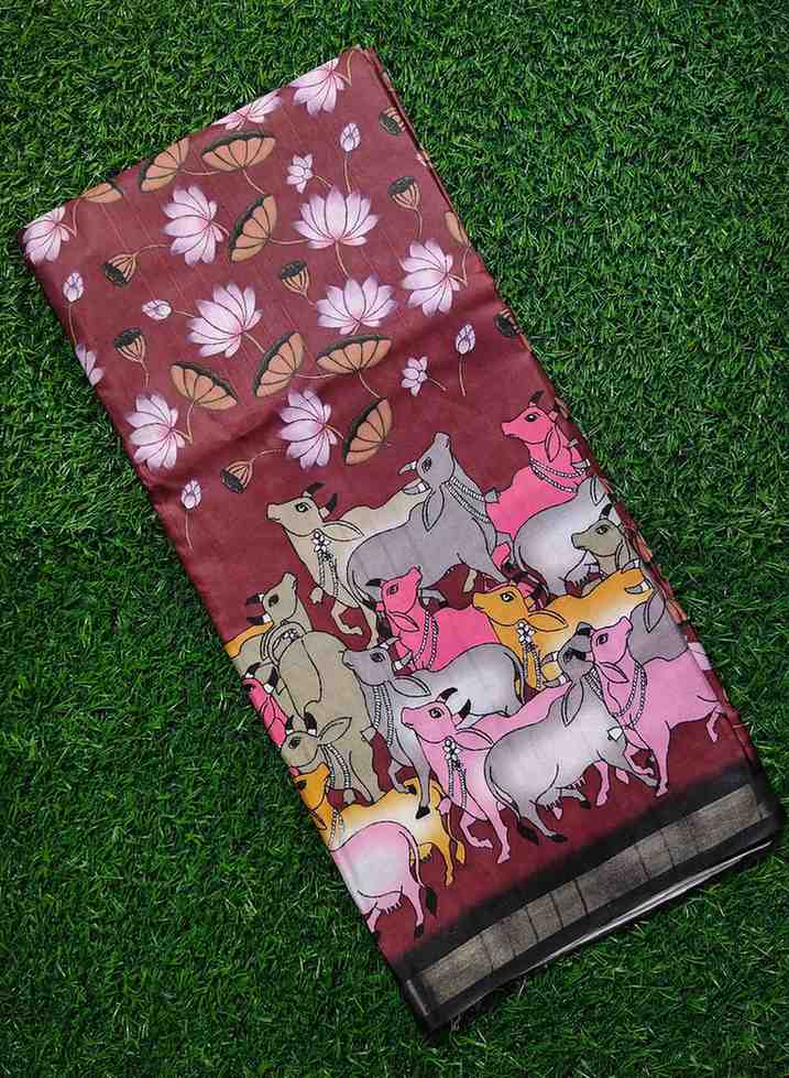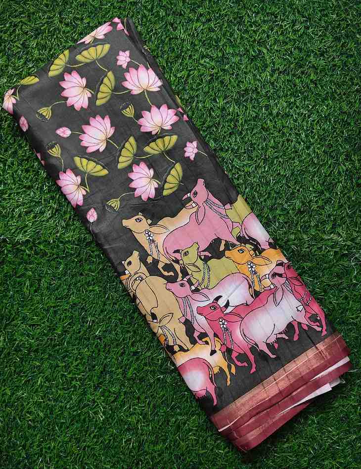 Pichwai Print Dola Silk Saree with blouse Courier charges depends upon your location