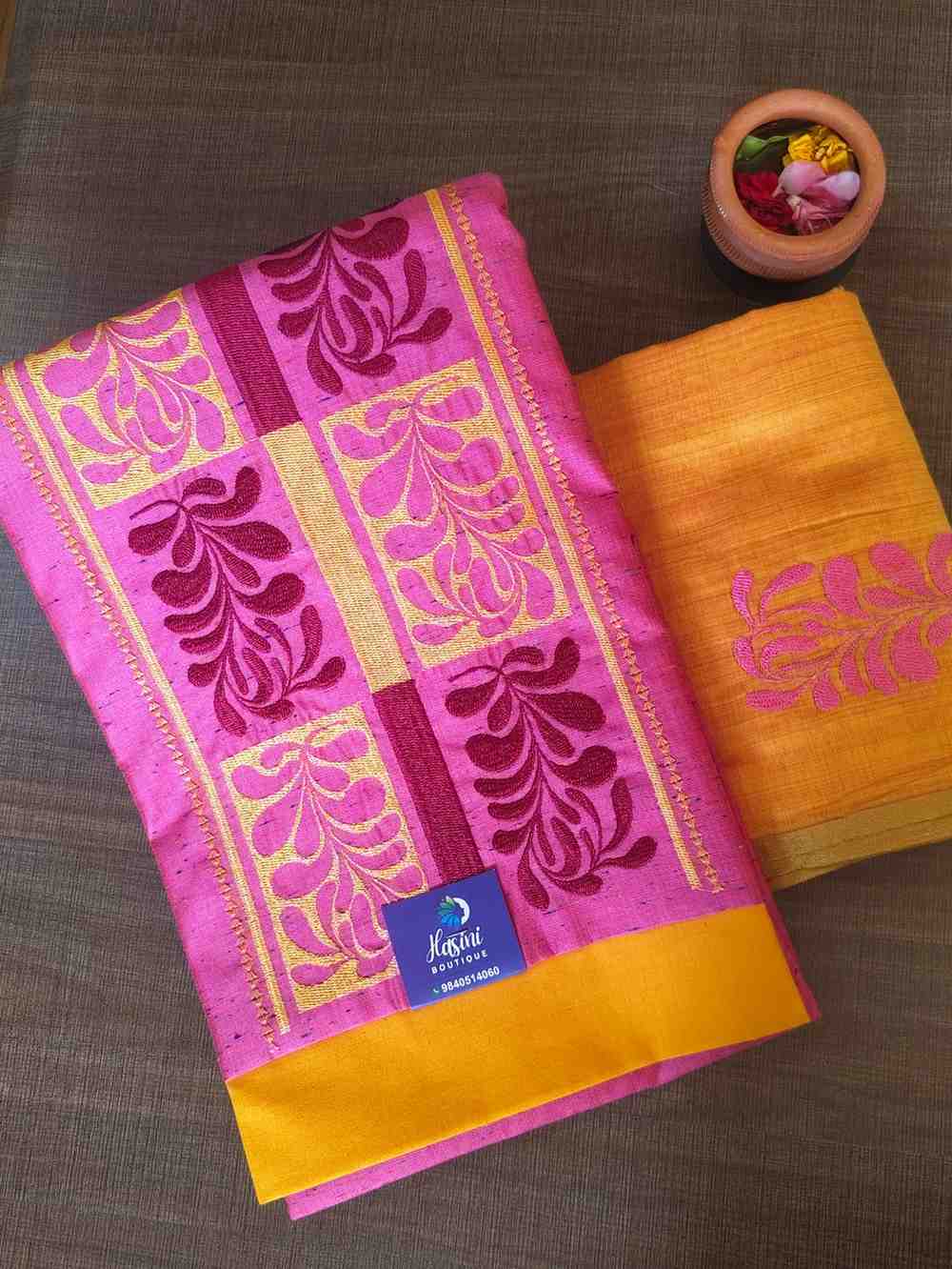 Khathi Silk Cotton Chudi Material Top Yoke Pattern Embroidery Work Contrast Cotton Bottom Dupatta Cotton with Embroidery work